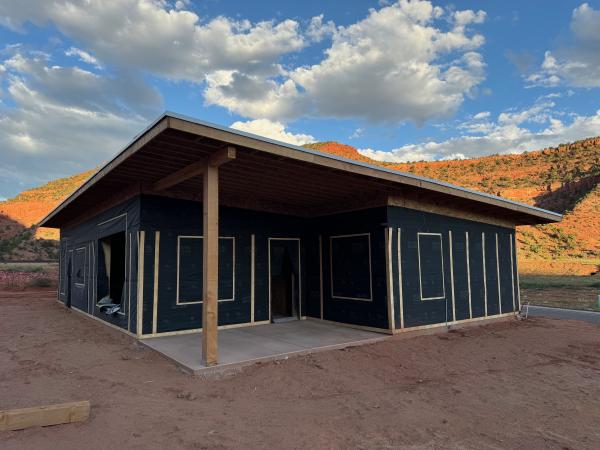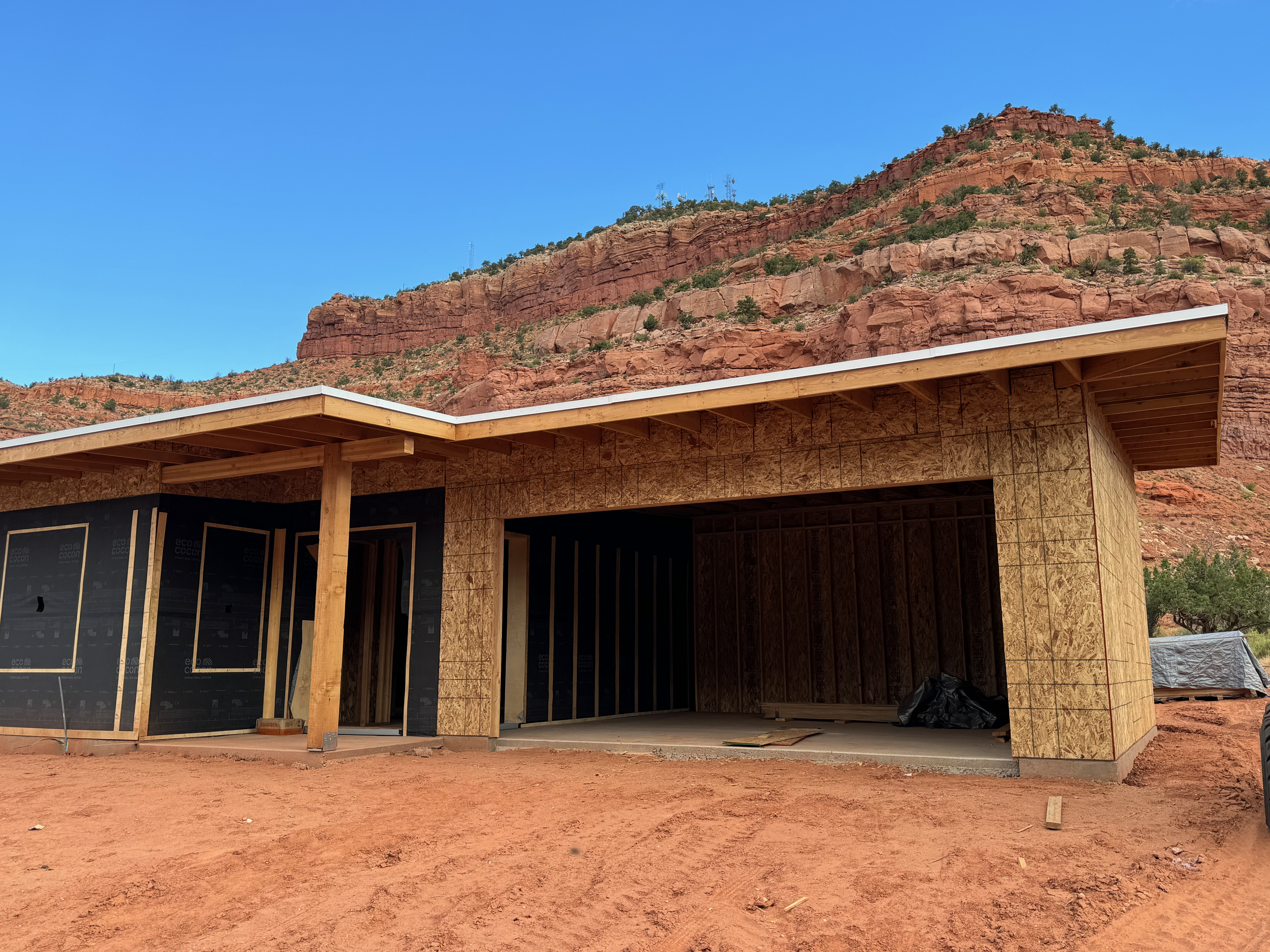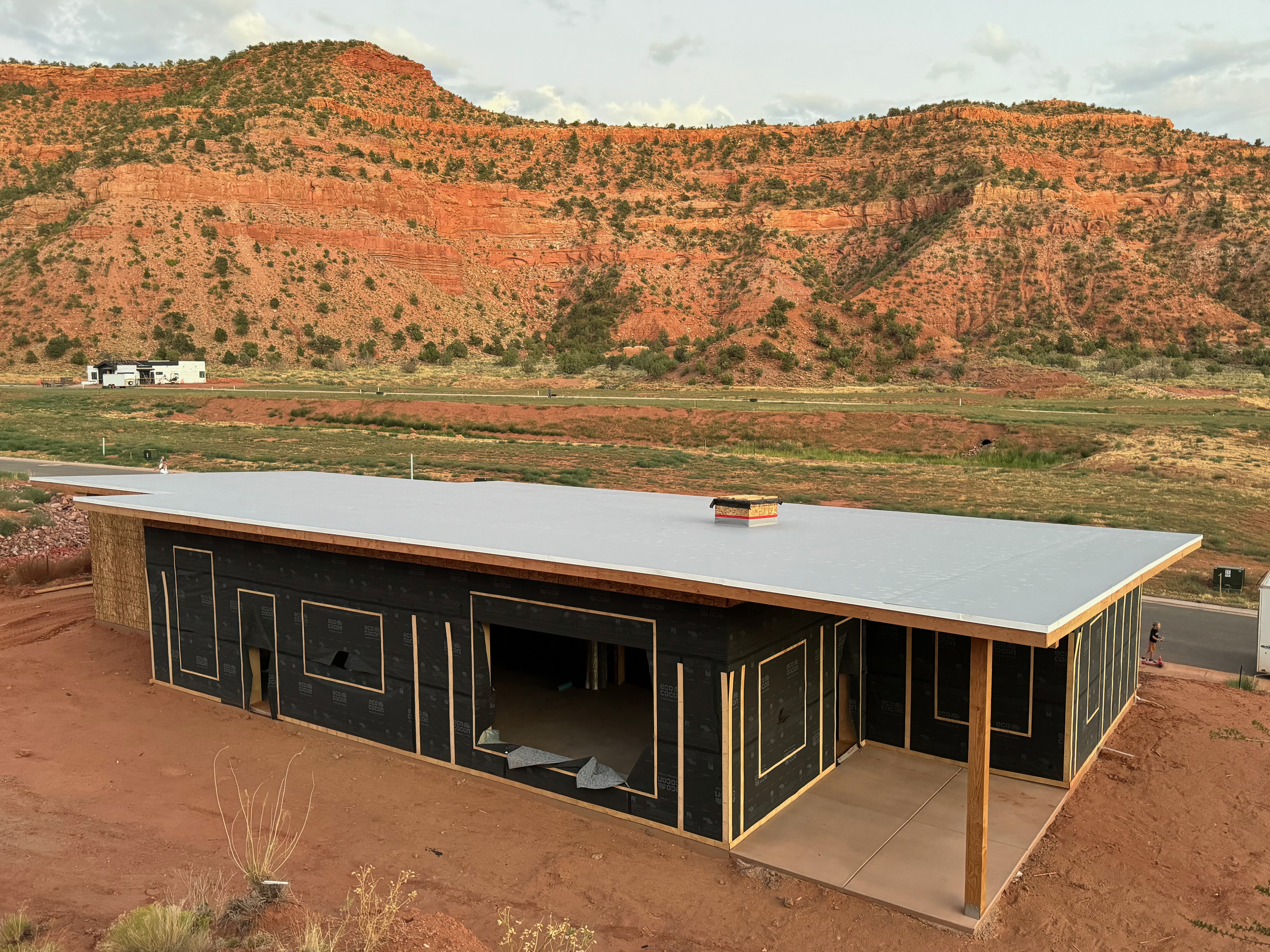 We have a roof! As the roof is at a low angle (4°), TPO works really well. We looked into a standing seam metal roof, but it would have been twice the cost, which was not worth it for a roof that’s mostly hidden.
